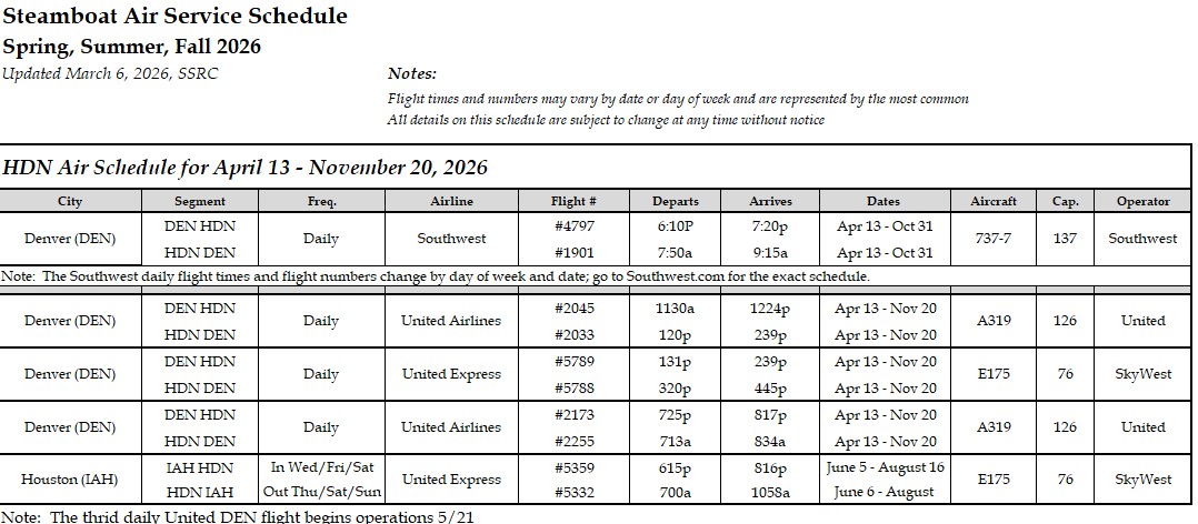 2026 Spring, Summer & Fall Flights to Steamboat